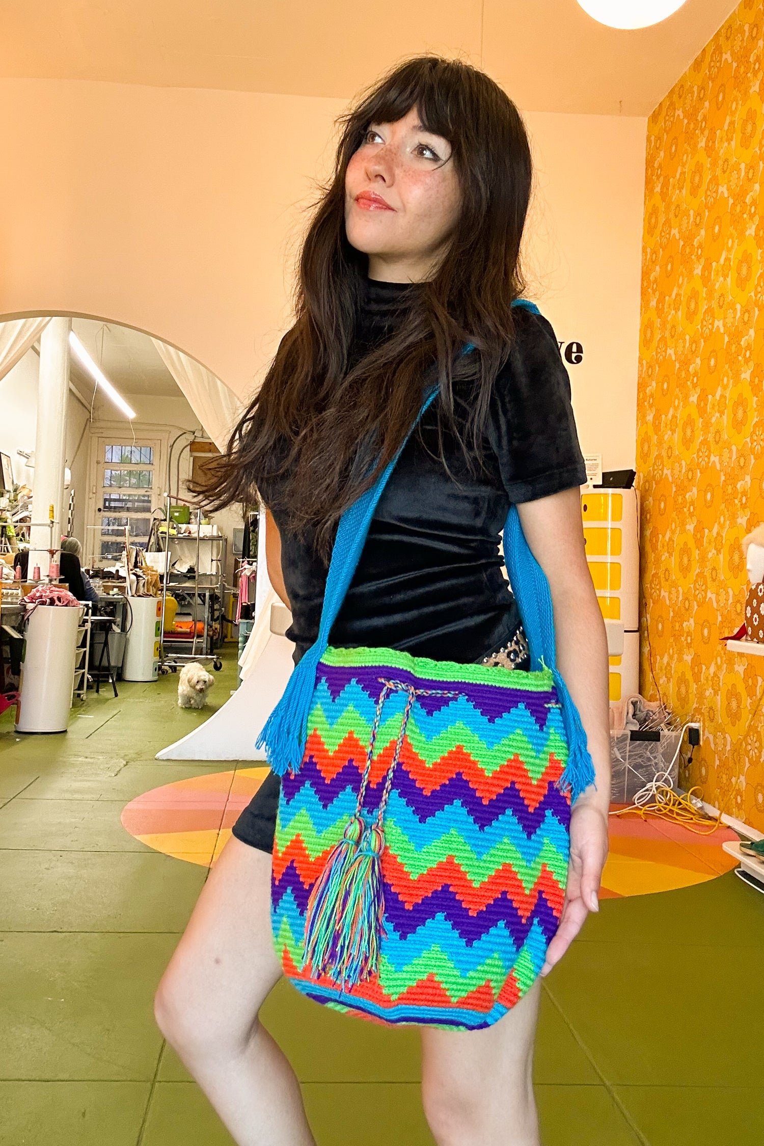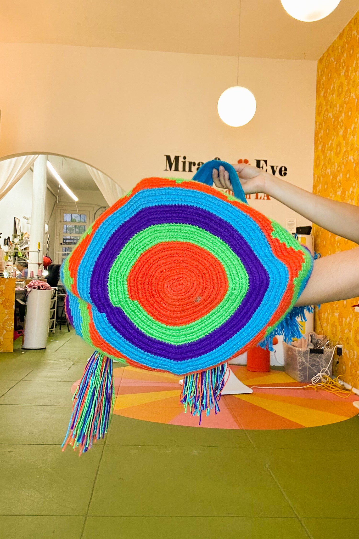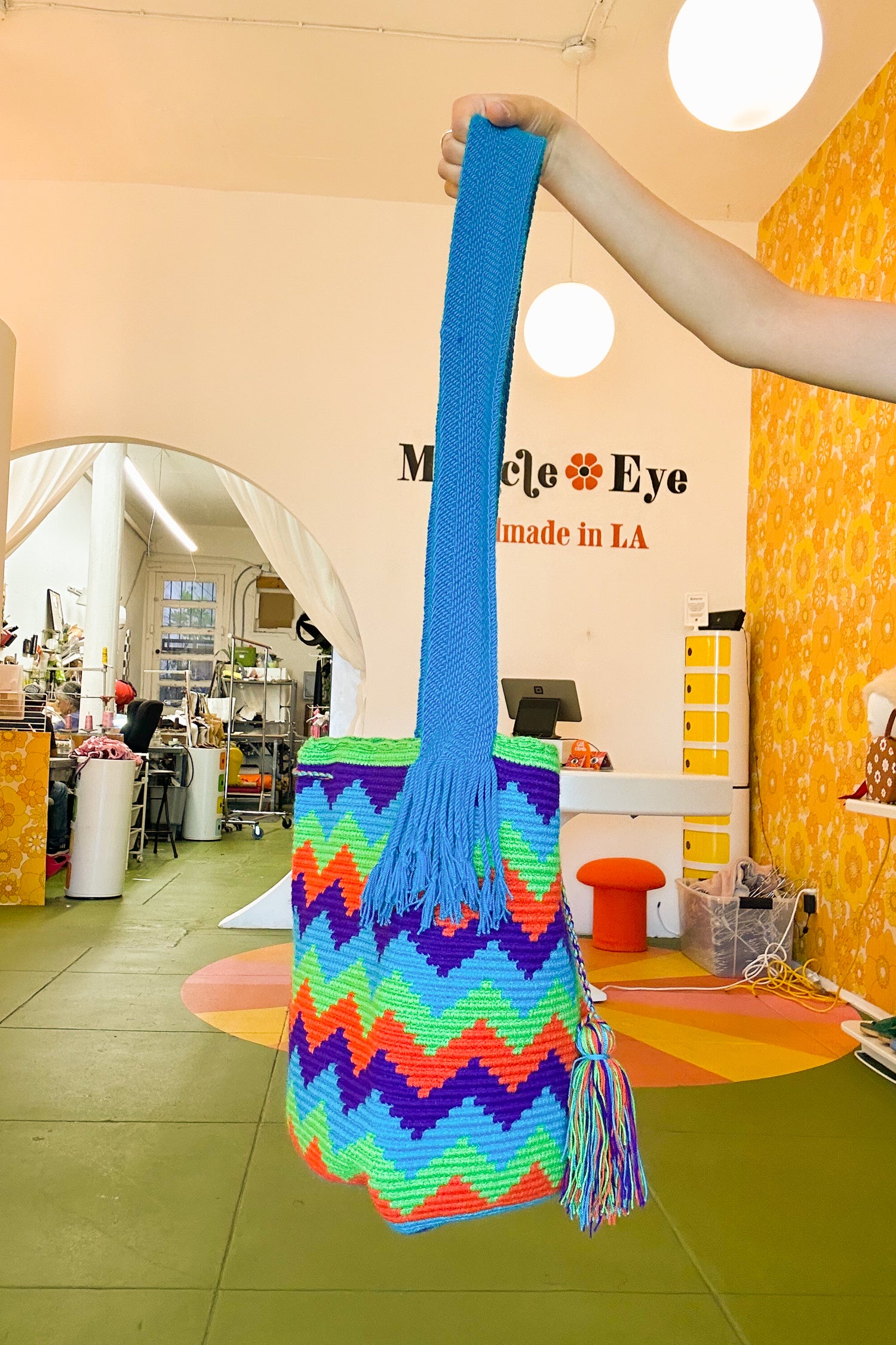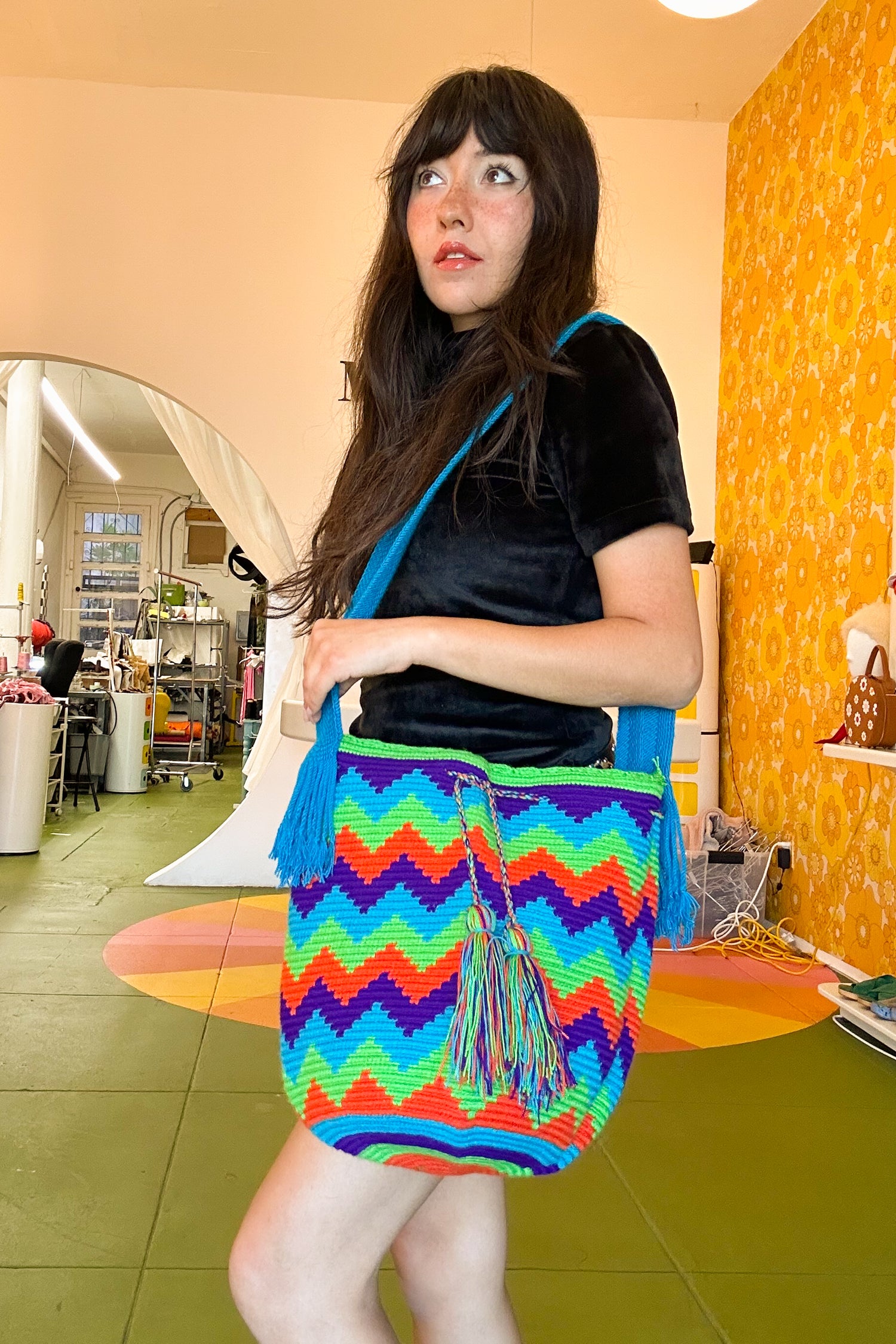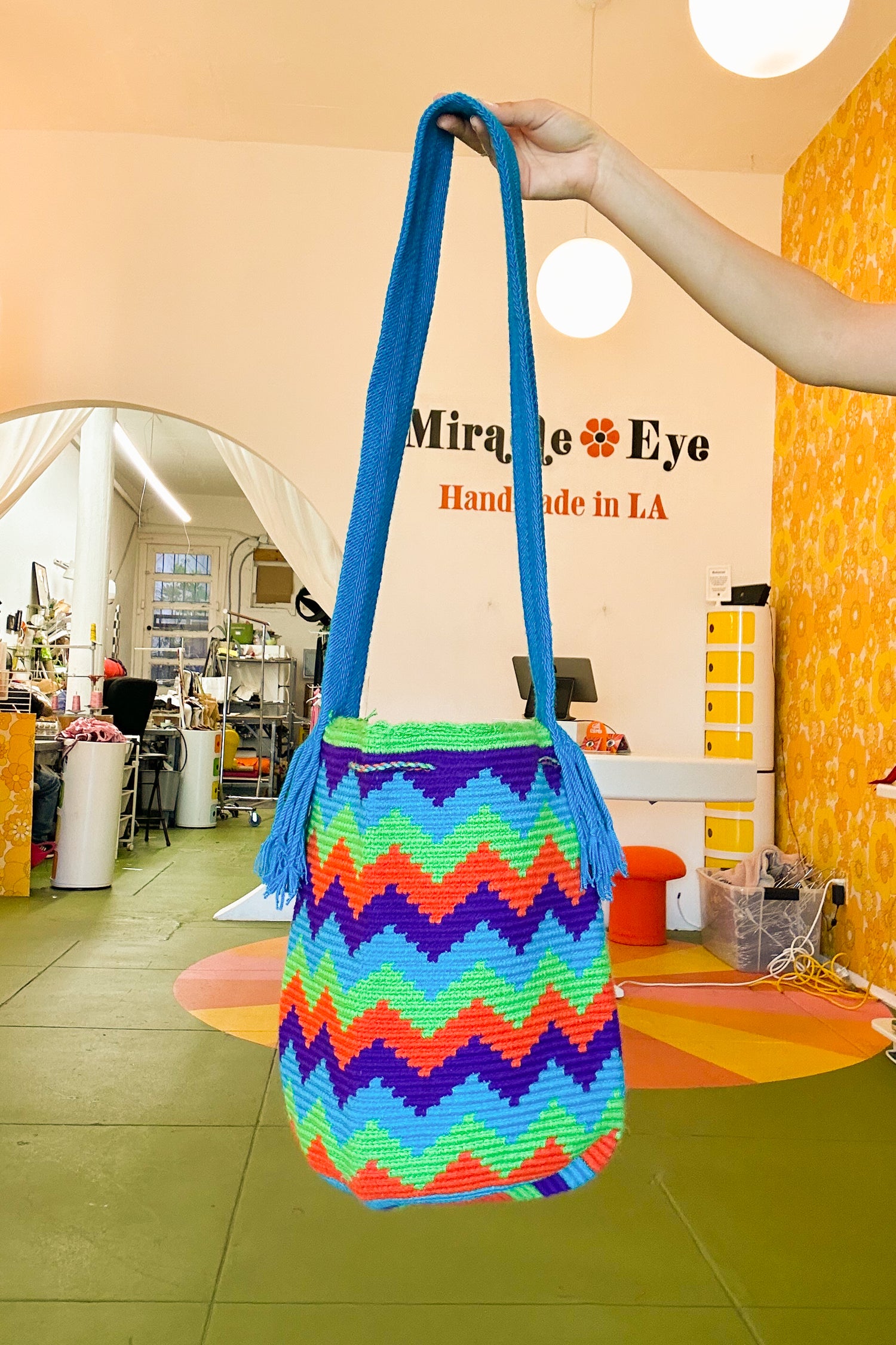 Stunning and colorful Wayuu bag, 100% fair-trade handwoven in Colombia. No two are alike, each is one-a-kind and cannot be restocked once sold. Each has been carefully crocheted by women from the Wayuu tribe in La Guajira, Colombia. My family and I visited our home country Colombia this year and brought these stunning bags back from our travels.