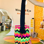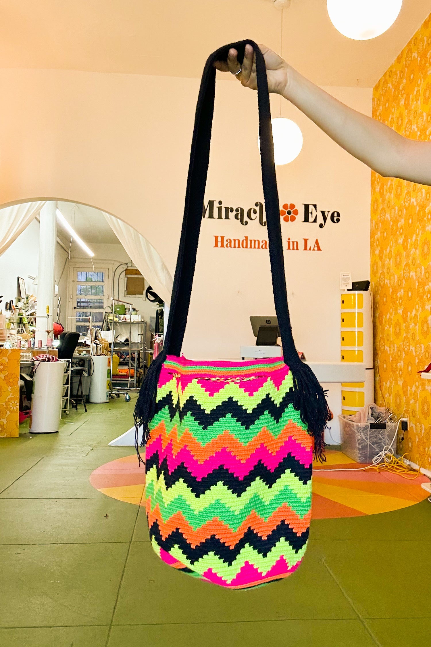 Stunning and colorful Wayuu bag, 100% fair-trade handwoven in Colombia. No two are alike, each is one-a-kind and cannot be restocked once sold. Each has been carefully crocheted by women from the Wayuu tribe in La Guajira, Colombia. My family and I visited our home country Colombia this year and brought these stunning bags back from our travels.