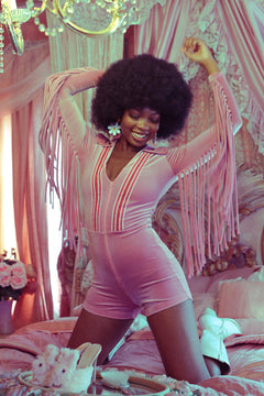 Vintage-inspired heart elastic belt with delicate rhinestone details on bucklepairs like a dream with our velvet rompers and jumpsuits. Adjustable size.